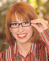 | Juhász Andrea szalonvezető szerint a cicás keret lágytja a vonásokat, és gyengédség sugárzik viselőjéről. |