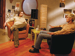 Bekopogok, az ajtó nyílik, és a szűk résen kinéz a doktor. Kis türelmet! mondja, így lehuppanok a folyosón egy székre, és bámulom a sárgafoltos lepedővel letakart kartonokat, a kávébarna fatapétával bevont hűtőszekrényt, és számolom a padló repedéseit. Amikor betege hazaindul, Csernus behív a szobájába. Csak a számítógép képernyője villódzik, és egy asztali lámpa világít. Azonnal bekapcsolom a magnót, és belekezdünk.