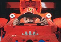 A legnagyobb meglepetés azonban az életnagyságú Ferrari versenyautó: a modell száznegyvenhatezer piros legókockából készült, és háromszáz kilót nyom. Több mint száz nap alatt építette tizennégy MasterBuilder (azaz, olyan személy, akit azért fizetnek, hogy egész életében legózzon). Az autó annak a kampánynak a fontos eleme, amellyel beharangozzák a LEGO és a Ferrari együttműködését: még az idén kapható lesz a világbajnok autó mása, kétféle méretben. Lehet továbbá vásárolni boksz-utcát benzintöltővel és kerékcserélő emberkékkel, mi több, Barichello és Schumacher figuráját is megformálják a műanyag kockákból.