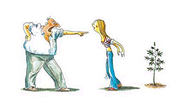 Hogy a kamasz zárkózott vagy éppen provokatív (szemtelen)? Hát persze, hogy az! Mint mondják, ez a második mások szerint harmadik születés kora; akkor egy önálló test született a világra, most egy önálló személyiség. (A közbeeső „születés: az iskolaérettség.) A friss kutatások szerint átalakulnak az agyi struktúrák, kapcsolatrendszerek, a kamasz önmagát sem érti… Békén kellene hagyni ilyenkor, hiszen fáradt és zavart! Ugyanakkor: megnő az érdeklődése a világ és az ember jelenségei iránt, és igenis ki akarja próbálni a lehetőségeket, különösen, ha tilalmakkal felhívják rájuk a figyelmét! Ami tilos, az vonzóvá, kívánatossá válik ami tiltott, az csábító. Lehet, hogy lánya bosszantani akarja az apját, így akarja kiküzdeni önállóságát. Abban viszont sem a külföldi, sem a magyar szakemberek nem értenek egyet a férjével, hogy a füves cigi kipróbálásától a kemény drogokig „egyenes az út. A kipróbálók többsége megmarad könnyű drogos alkalmi fogyasztónak (vagy azzá se válik), de ez a többség soha nem nyúl keményebb szerekhez, és nem válik függővé sem.