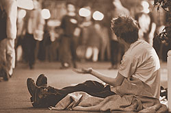 Manapság egy barlangban lakik. Az idősebb srác intézkedik közben: Max, van 34 forintod? Annyi hiányzik a borhoz… Összedobják. Max most határozottabbra vált, és mintha inkább magának beszélne: Fiatal vagyok még, huszonnyolc, előbb-utóbb úgyis talpra állok. Csak a hozzáálláson múlik. Mert én, ha dolgozom, nem iszom ám egy kortyot sem! És ha beindul a munka, elrakosgatnám a kis pénzecskét, aztán kivennék egy picike albérletet, és onnan már mehet tovább minden. Persze nem egyedül, mert úgy nehéz. Fogom az egyik barátom, és együtt csináljuk. És akkor majd mindegyikünknek megoldódik a problémája. Mert ha már dolgozunk, akkor felöltözünk rendesen, aztán elmegyünk egy jó kis szórakozóhelyre… Közben odanyújtja a sajtos zsömle utolsó falatját a mellettem ülő, eddig szinte öntudatlannak tetsző fiúnak, aki most mintha kezdene magához térni. A szeplős srác az ételért nyúl, egy természetes mozdulattal letörli az ujjával a haverja szája széléről a sajtmaradékot, és az aszfaltba keni. Na azért most is szórakozunk ám! emeli fel a fejét vidámabban Max. – Nyáron is lenn voltam Tokajban, bejártam az egész Balatont, a Művészetek Völgyét a haverokkal, pénz nélkül, minden nélkül. És marha jól éreztük magunkat! Aztán a tél már húzósabb. Ősszel jön egy fejütés, hogy most már dolgozni kéne, meg lakni valahol… De még szép idők vannak, most jó. És én nagyon szeretem a barátaimat egyesével mutatja a körülöttünk fekvőket, üldögélőket – Mityót, Totyát, ezt a bolond Sördögöt… mindenkit.