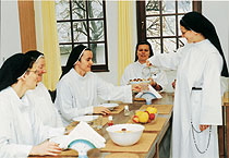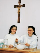 A novíciák magisztere vagyok, én kísérem a jelölteket a szerzetessé válás útján. Először csak szemlélődnek, ismerkednek, a novíciátus első éve is csendes, bensőséges. Figyeljük egymást, hogy jó-e így nekik, nekünk. Ez az a rend, ahová valók? Ez az ő közösségük? Boldogok? Boldogság, ha az ember érzi: helyén van. A második évben már részt vesznek kísérőként az apostoli munkában, de a csendet őrizzük tovább.
