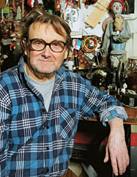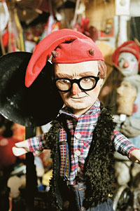 Tényleg olyan, mint egy nagy gyerek. Bábok és emlékek között él, tárgyakkal zsúfolt műhelylakásában. Ha éppen nem bábozik, akkor kitalál olyan játékokat, mint a csipkefaragás.