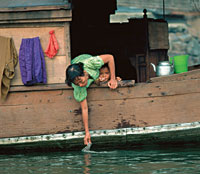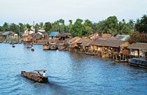 A reggel ismét hajón talál: az úszó piacra igyekszem. A világ egyik legnagyobb deltavidékének tizennyolcmilliós népe a vízből és részben a vízen él, sokan a hajóikon laknak, amelyek egyben üzletül és raktárul is szolgálnak. Az úszó piacokon a nagy bárkák a nagykereskedők standjai: bambuszrúdra tűzött dinnyék, kókuszok és egyebek hirdetik, hogy ki mit árul. Hajnaltól délig megállás nélkül érkeznek a kiskereskedők, a piaci kofák, az éttermek és a kifőzdék hajói, hogy bevásároljanak, az üzlet a vízen köttetik, és a hullámzástól mit sem zavartatva, a víz fölött folyik a rakodás is, akrobatikus ügyességgel, egymást lökdöső, tolongó, egérútnyi átjárást kereső hajók között. A nekihevült kereskedőket és a kíváncsi turistákat élelmes mozgóbüfések kínálják jéghideg üdítővel és sörrel, persze csónakból. Bal kezükkel a másik hajóba kapaszkodnak, a jobbal kiszolgálnak, a mosoly egy pillanatra sem tűnik arcukról.