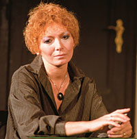 Feláll, hátramegy, pár perc múlva köpenyben, papucsban jelenik meg. Int. Bemegyünk az öltözőbe. Szűk kis szobácska. Körben felakasztva rengeteg középkori ruha, hátrébb kopott pamlag, elől két szék, két tükör, két asztal. A két asztal rögtön elárulja tulajdonosát. Az egyiken némi rendetlenség van, minden szertelenül, rakoncátlanul otthagyva. Ez Onódi Eszteré. A másik már-már rigorózusan rendes, minden szimmetrikus, minden kéznél van, a sminkek érezhetően úgy állnak kézre, ahogy rájuk éppen szükség lesz festéskor.