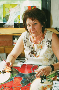 A köztisztviselők napjára kiállítást rendeztek a hivatalban, akkor tudtam meg, ki mindenki varr, sző, fest, vagy mond verset meséli Ujbányai Veronika, aki Szentendrén, a polgármesteri hivatalban napi nyolc órán át önkormányzati lakások kezelésével, fenntartásával foglalkozik. Aztán hazamegy, otthon montázsokat készít, néhány éve pedig rátalált a hozzá legközelebb álló ólomüveg- és Tiffany-technikára. Építőipari technikusként végzett, szereti a munkáját, de a műszaki szögletességen túl, mindig érdekelték a vizualitás kerekebb, íveltebb, szabadabb formái. Jó rajzszakkörök, tanárok, iskolák segítették, és segíti a férje, aki fényképeket készít, átmeneteket fotó és festmény között, és akivel augusztus 20-ától közösen állítanak ki Szentendrén, a CÉH Galériában.