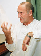 Kér még egy kis üveg ásványvizet, aztán elindulunk az öltözőbe. A madárinfluenzáról beszél, a ráckevei pecázásról, egyik felmenőjéről, aki a Monarchia utolsó magyar kancellárja volt, majd kegyvesztettsége után a szárd királyság pénzügyminisztere lett. Nagyot sóhajt: bizony ebből a pénzügyi tehetségből vajmi keveset örökölt. Már-már gyanúsan nyugodtnak tűnik. Meg is jegyzem, és ő sűrűn bólogat.