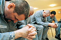 magyaráz a fiúknak a református börtönlelkész. Enyhe derültség. A fehér falon nagy kereszt. Csütörtök, három óra: a heti két missziós foglalkozás egyike. A részvétel önkéntes, ahogy a lelkész mondja, van, hogy öten jönnek, van, hogy ötvenen. Van, hogy csak balhéból.