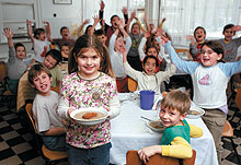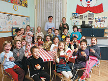 Előfordul, hogy szóvá tesszük: ma csípős volt a leves, kevés a krumpli mondja az óvodavezető, Papucsek Mihályné. Az étkezés gondozási feladat, tehát nagyon figyelünk rá. Hetente egyszer valamelyik szülő hoz be gyümölcsöt, olyankor gyümölcsnapot tartunk, salátát készítenek, kóstolgatják. Volt olyan gyerekünk, aki addig nem ette a banánt, itt szerette meg. Jött is a szülő boldogan. A meggyszósszal is bizalmatlanok voltak, azt is megszerették. Ebben a korban még változhat az ízlés.