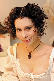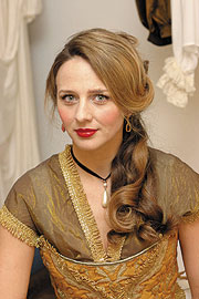 – Én nagyon bírtam volna abban a korban élni. A férfiak férfiak, a nők dominánsabban voltak nők. Gyönyörűek voltak a ruhák. Színpadon persze elég izzasztó az a sok cucc – alsószoknya, alsó bugyi, harisnyakötő, fenékpárna –, ráadásul úgy be vagyunk fűzve, hogy levegőt is alig kapunk. Nell az utcáról került a színházba és felvállaltan először kezdett játszani a földszintnek. Létező személy volt, festmény készült róla és a szeretője, II. Károly király is kedvelte. Szép kastélyban élt, selyempárnák között, nevelgette a királytól született gyerekét. Fiatalon halt meg, állítólag szifiliszben, amit szintén a királytól kapott.