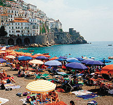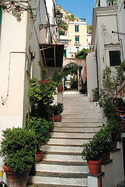 Szédítő sziklafalak, buja délszaki növényzet, narancs- és citromkertek, a csipkés öblökbe teraszosan aláereszkedő városkák: Sorrento Positano, Amalfi. Napfény, virágillat, a színek orgiája.