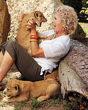 Feltűnően egyenes járás, magasra emelt fej, határozott arcvonások, előre szegezett tekintet, erős, ám mégis puha léptek. Ki más is közeledhetne így, mint az állatöv elegáns nagymacskája, az Oroszlán? Pontosabban Udvaros Dorottya. A debreceni állatkertben tett látogatásán minden szempár rászegeződött. Az állatok királyai a három héthetes kisoroszlán a tisztáson már várták az állatöv királynőjét. Amikor megérkezett, a gondozók által veszélyesnek tartott férfijelölt kölyök mélyről jövő hangon felbömbölt. Fotósunk hátrahőkölt, sminkesünk elejtette a púderpamacsot, én egy fa mögé rohantam, Dorka pedig mosolyogva, méltóságteljesen közeledett az állatkert ifjú oroszlánkirálya felé. A karjába vette, majd miután leült egy fa tövébe, a lánytestvérkék is az ölébe feküdtek, hozzábújva lustán ásítozni kezdtek, és kényelmesen elhelyezkedtek. Úgy éreztük, megállt az idő, mert egy régi kép úszott be az emlékeinkből, mintha Joy Adamson Elza és kölykei című könyve elevenedne meg.