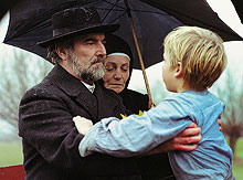 Jób a szekéren. Makacsul néz előre, nem akarja látni a gyereket, akit haragos mozdulatokkal kerget el maga mellől, vissza az életbe. A gyermek nem érti. A világ gonoszságba dermedt.