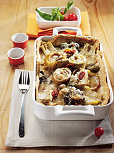 30 dkg túró, 2 tojás, 1 dl tejföl, fél dl félédes fehérbor, 1 cs. petrezselyem, 2-3 szál friss bazsalikom, őrölt fehér bors, só, 30 dkg articsóka (konzerv), 30 dkg zöld olívabogyó; a tésztához: 20 dkg liszt, csipetnyi só, 15 dkg vaj, 1 tojássárgája.