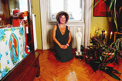 A női sarok – itt található a már említett „női szekció”. A Mennyei Anya szobra Erdélyből származik, a vitrinben levő vásznon a mexikói ábrázolású Guadalupe található, sok-sok „nőcis kacat” alatt-fölött. Ebben a sarokban vannak a női archetípusok is.