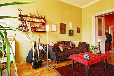 A lakás szinte minden falán van legalább egy festmény – Somának több képzőművész barátja van, a nappali falán több kép is van, amit ők készítettek.