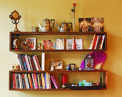 Ez a legyező abban a sarokban van az egyik polcon, amelyik a feng shui szerint a szex és a szerelem központja.