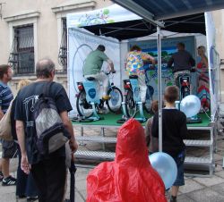 Az energiabringák építésével idén tavasszal készültek el az Energiapersely program szakemberei, és először április első hetében vetették be őket kísérleti üzemben: a közel 2000 Wh áramot félezer önkéntesen jelentkező, vállalkozó kedvű látogató termelte meg hat nap alatt a Construma kiállításon.