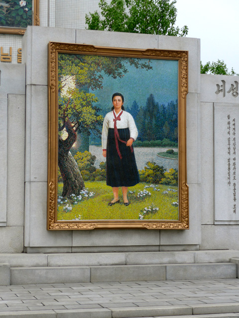 Ebben az országban egyetlen asszonyt övez kultusz, az örökös vezető, Kim Ir Szen (akinek születésétől számítják az időt is) első felesége és harcostársa, Kim Dzsongszuk a mindenek felett álló asszony, akinek képmása (és szobra) sok helyen látható (bár korántsem annyiszor, mint férjéé, illetve annak fiáé, Kim Dzsongilé). Ő együtt volt száműzetésben férjével, mindig csak őt szolgálta. Ez tehát a női minta itt, 2014-ben.