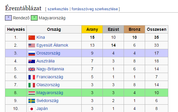 A vizes világbajnokságon végül összesen 10 magyar érem született. Négy bronz-, 3 ezüst- és 3 aranymedállal az éremtáblázat nyolcadik helyén végzett Magyarország.