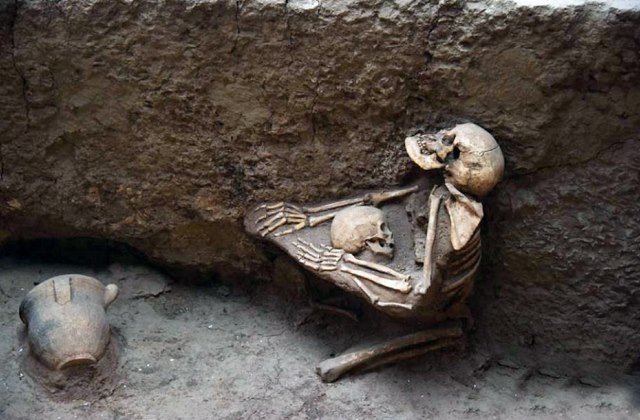 Kínai archeológusok bukkantak rá a 4 ezer éves csontvázakra: az anya szeretettel öleli magához gyermekét. Az édesanya a földrengéstől próbálja megvédeni a kicsit. A „közel-keleti Pompeinek” is nevezett, időszámításunk előtt 2000-ben történt katasztrófában Kína középső részének lakói estek áldozatul.