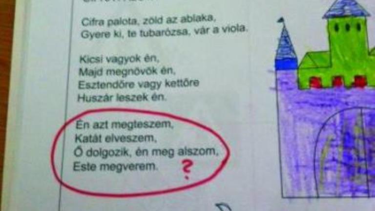 Világos, értjük, miről szól a kép. A magyar malackát kevésbé, mert mitől is vidám, ha nem szophat a többiekkel együtt? De mégis felmerül a kérdés, a tankönyvírónak ugyan mi volt a szándéka a botrányosnak tűnő feladattal? Mert mégis, de tényleg, mit tanulnak ebből a nyolcadikos gyerekek? A válaszokat mindenkire rábízzuk.