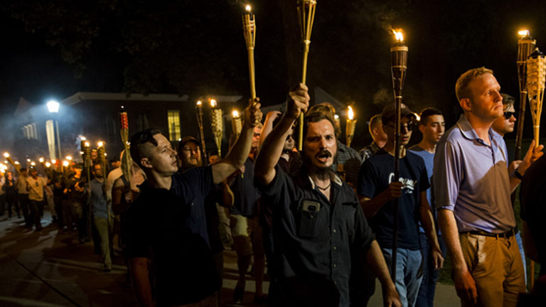 Ez azért lényeges, mert a szélsőjobboldali tüntetők között feltűnt egy önmagukat The Militia néven nevező szervezet, akiket a felületes szemlélő simán katonának, esetleg rendőrnek nézhet. Ezek a terepszínű ruhákba öltözött férfiak ugyanis az amerikai hadseregben rendszeresített gépkarabélyokra emlékeztető félautomata karabélyokkal és egyéb fegyverekkel felszerelve könnyen azt a látszatot kelthetik, hogy valamilyen hivatalos szervhez tartoznak. Pedig nem, ők valójában sima náci tüntetők. Az USA egyik legnagyobb, a fehérek felsőbbrendűségét hirdető demonstrációját egy Jason Kessler nevű egykori újságíró szervezte, aki tagja a Proud Boys nevű ultranacionalista csoportnak.