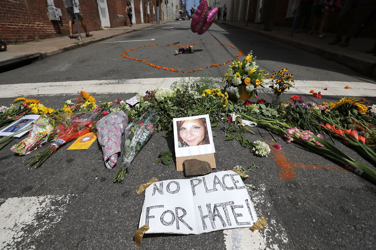 A 32 éves korában elhunyt Heather Heyerre a helyszínen virágokkal és gyertyákkal emlékeznek. A jogászként dolgozó nő egyik utolsó facebookos posztján egyébként a következő felirat látható: „ha nem vagy felháborodva, nem figyelsz eléggé”.