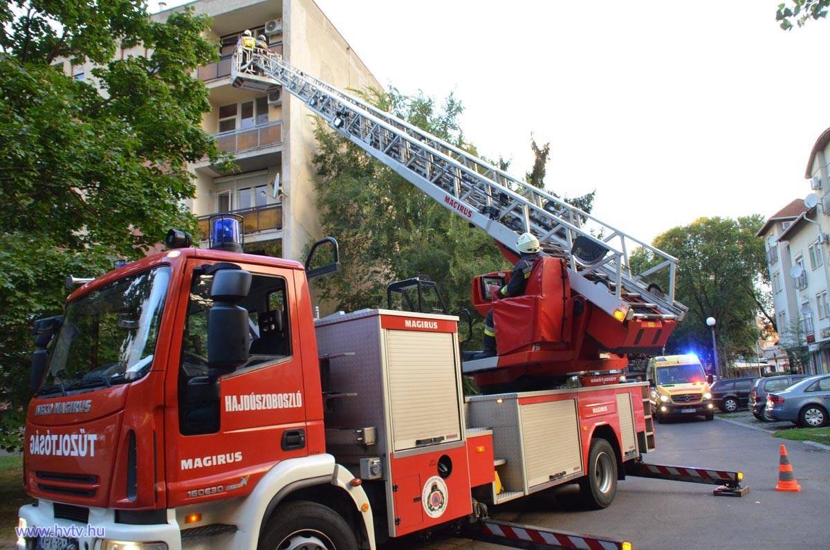 A tűzoltók behatolnak a házba, ahol az asszony holttestét megtalálták. Forrás: Facebook/Hajdúszoboszlói Városi TV