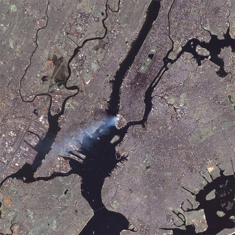 A World Trade Center ikertornyainak füstjét a világűrből is látni lehetett (Fotó: NASA)