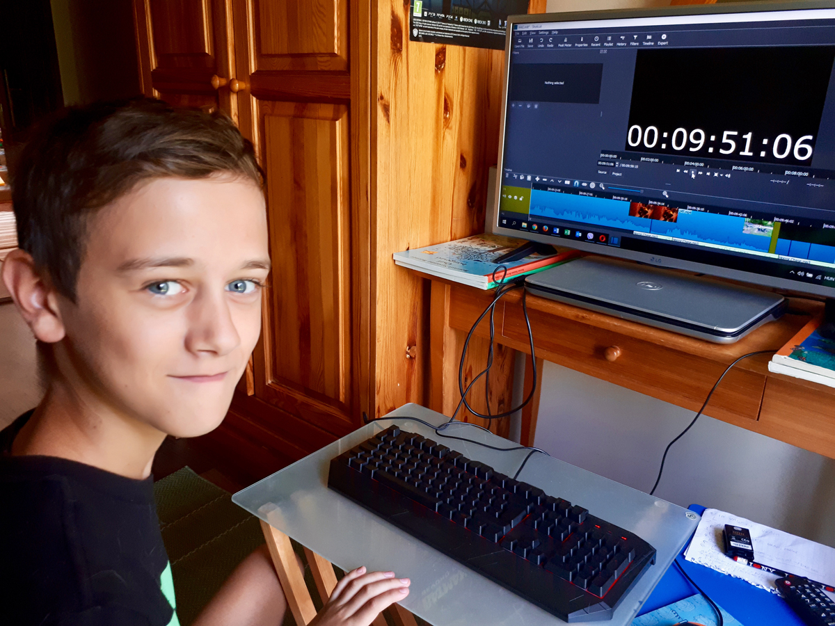 Gyurkovics Kornél már háromévesen rajongója volt a filmeknek, először a Pókembernek, aztán jöttek a kalandfilmek. Most épp Vissza a jövőbe!-poszter lóg a falán, de a szobájában akadnak Indiana Jones-relikviák is. A kütyüzés őt is utolérte, és bár bevallottan Minecraft-rajongó, elsősorban filmkészítésre használja az eszközöket. Igen, filmkészítésre. Most 11 éves, de már 8 éves kora óta gyártja a produkciókat.