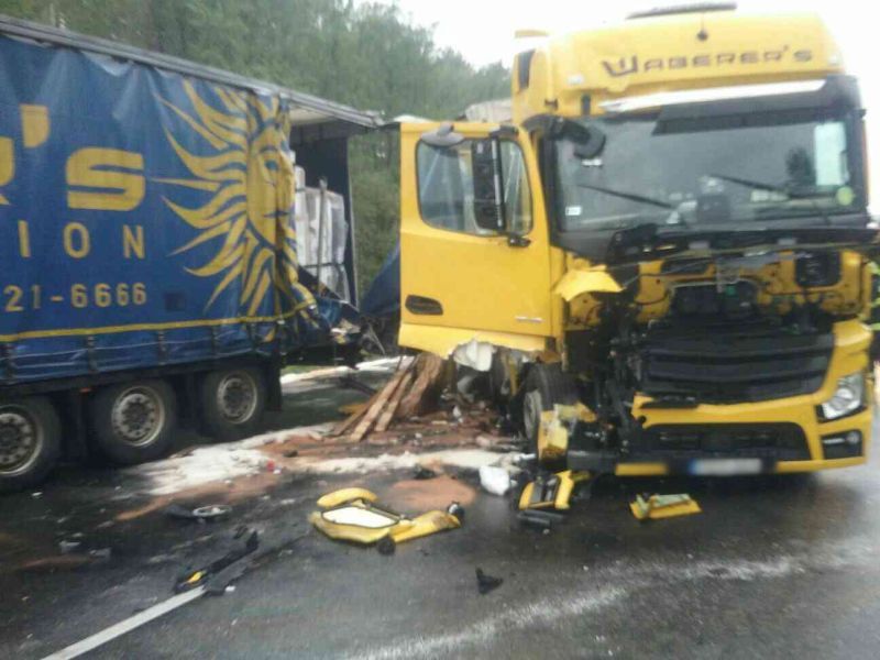 Három kamion ütközött össze kedd délután a D2-es autópályán, Szlovákiában. Az összeroncsolódott teherautók 14 kilométeres dugót okoztak a szlovák autópályán.