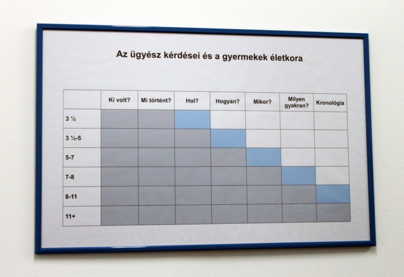 Segítő tábla a Barnahusban. Az igazságszolgáltatás sokszor olyan kérdésekre vár választ a gyermekektől, amelyekre életkoruk miatt még nem tudnak felelni.