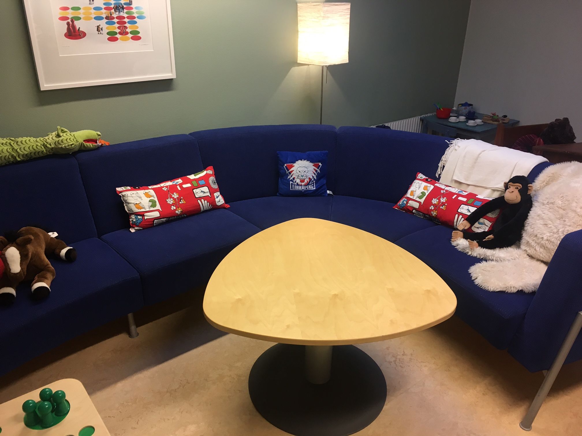 A házban működik nőgyógyászati rendelő, ahol felvételt is tudnak készíteni a gyerek sérüléseiről. A kihallgatószobában, egyszeri alkalommal kell beszélni a gyereknek egy erre kiképzett pszichológusnak a történtekről, amiről felvétel készül, és a szomszédos monitoringszobában szakemberek figyelik őket. A szoba berendezési tárgyai között érdekes babákra bukkanunk: egy egész családnyi rongyból készült figura, ők az „abúzusbabák”. Ha a gyerek levetkőzteti őket, megláthatja, hogy a szokásos babáktól eltérően férfi és női nemi szerveket viselnek a ruha alatt. A babáknak koruk is van: kisgyerek, kamasz, öreg. Mindez támogatja a gyereket, hogy felidézze a vele történteket, milyen korú, nemű ember bántalmazta. A babákat négy évszaknyi ruházattal is ellátták, ami az időtényező beazonosításban segíthet: ha a gyerek fürdőruhát ad a babára, akkor nyáron történt az eset, ha sálat, télen. Az egyéni vonások nélküli sémababára pedig berajzolhatja a gyerek az elkövető arcvonásait, ez akkor hasznos, ha a gyerek olyan elhanyagolt környezetből érkezik, hogy alig tud beszélni, vagy egyéb probléma miatt (autizmus, mutizmus, értelmi fogyatékosság) nem szólal meg.