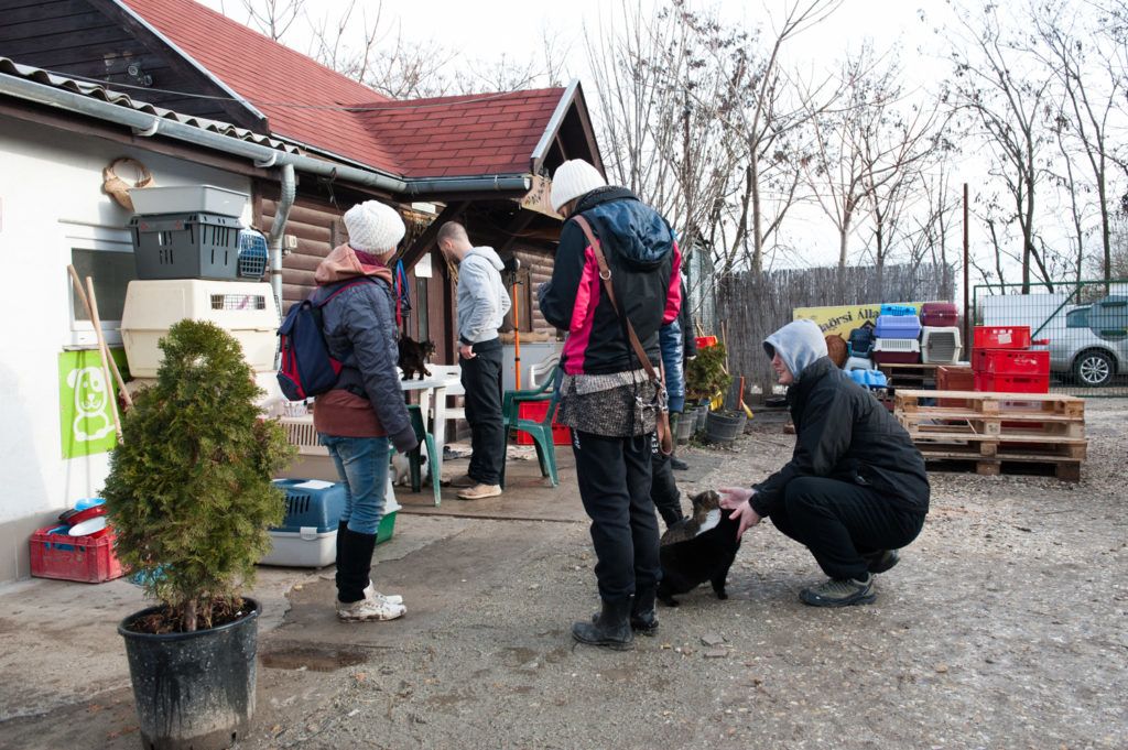 Hétvégenként olykor 30-40 ember is jön sétáltatni, de gyakran fogadnak nagyobb csoportokat is. Mostanában egyre nagyobb divat, hogy céges csapatépítés keretén belül jönnek segíteni, de rendszeresen vannak iskolás csoportjaik is. Most épp egy népes egyetemista csapat érkezett, amerikai diákok, akik a Corvinus Egyetemen hallgattak egy szemesztert, és most, a hazautazás előtt pár nappal, még kijöttek ide segíteni.