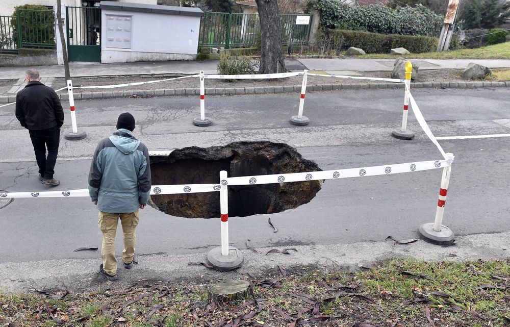 Beszakadt az úttest a budapesti Sasadi úton, a képek alapján másfél-két méter átmérőjű és mélységű kráter keletkezett. A rendőrség közlése szerint az omlás szombaton 9 óra körül történt a Botfalu köz kereszteződésétől 10 méterre, a Farkasréti temető (Érdi út) irányában.
