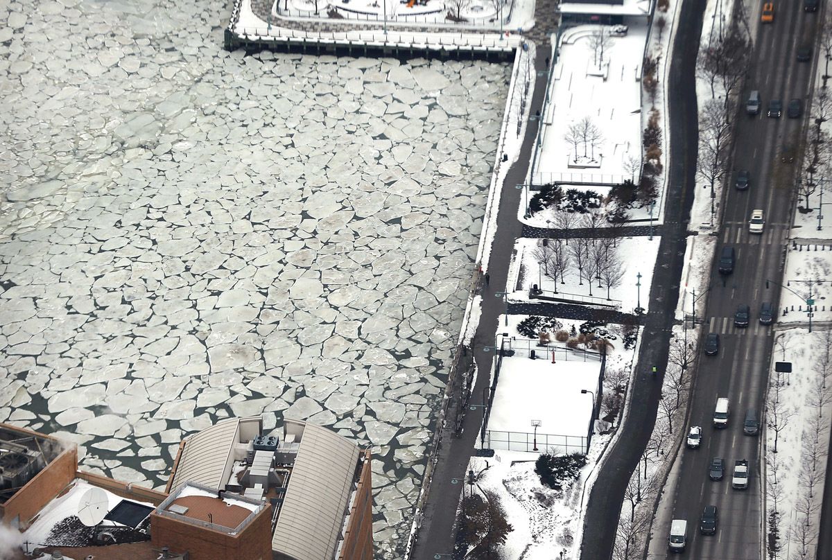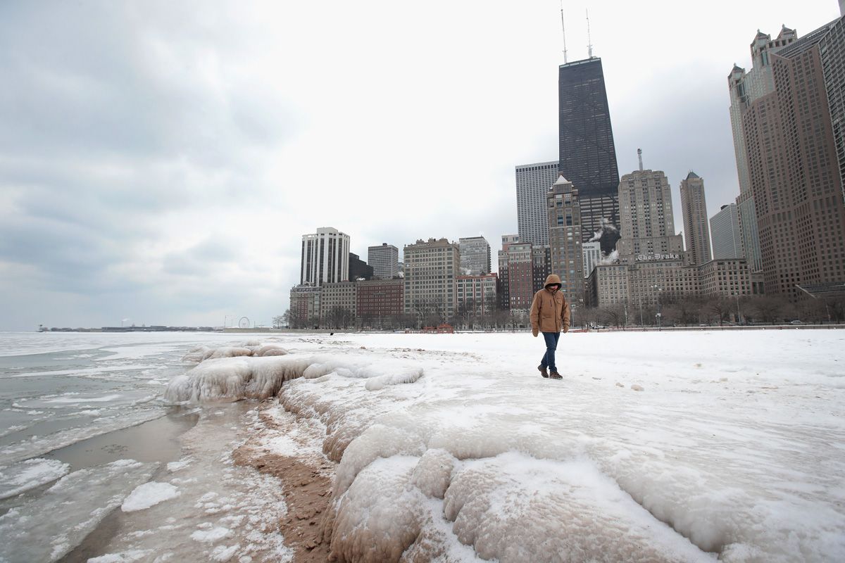 A fagyos Michigan-tó, Chicago partjainál (Fotó: Scott Olson/Getty Images)