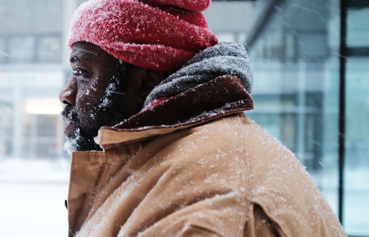 Egy hajléktalan férfi a bostoni hóviharban (Fotó: Spencer Platt/Getty Images)