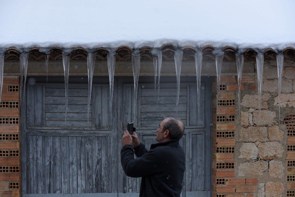 Óriási jégcsapokat fotóz egy férfi nem messze Soriától, Barahonaban (Fotó: Profimedia, Zuma Press – News)