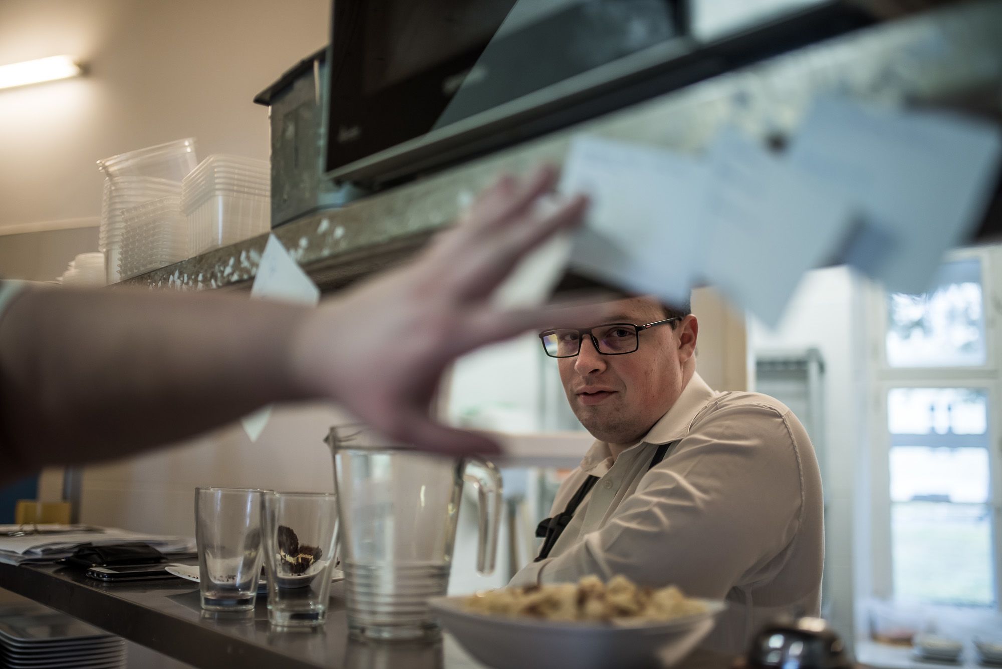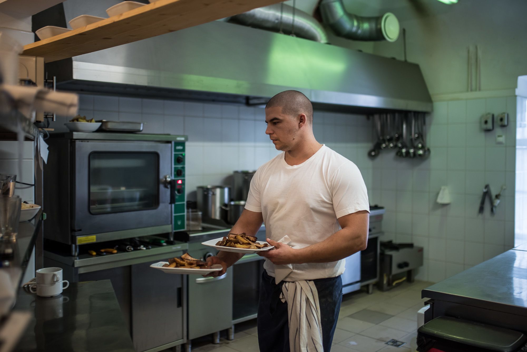 Aki jönne a keze alá dolgozni – akár az állami intézmények irányítják ide, akár ismerős ajánlja, akár az utcáról kísérik be –, az pontosan ugyanolyan próbamunkát kap, mint bármely más étteremben. „Pénzért dolgoznak ők is. Olyanokat várunk tehát, akik képesek az önálló, hasznos munkára.”