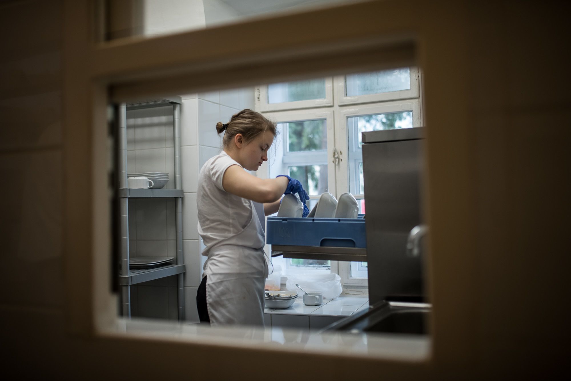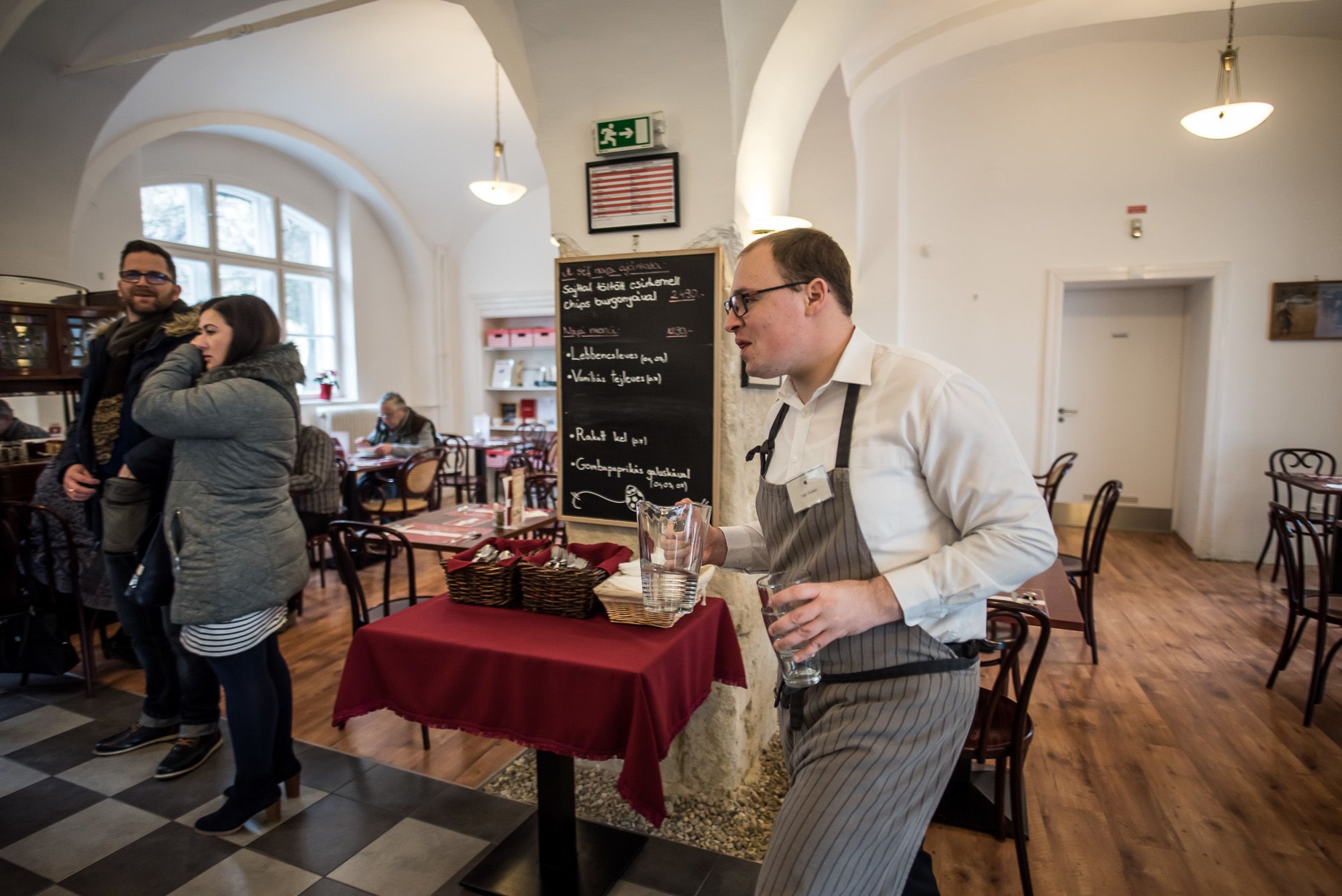 „Iszonyú nehezen indult” – kezd bele Vera a 2012-ben nyitott, de már évekkel azelőtt kigondolt étterem történetébe. Egy ilyen vállalkozást hatalmas munka felpörgetni: engedélyek, akkreditáció, a mentor foglalkoztatása mind-mind kihívás az ismeretlen terepen, már csak azért is, mert Magyarországon azóta is összesen négy hasonló hely működik. Az épületet ingyenes használatra kapták a kormányhivataltól tíz évre. Remélik, ha eljön az ideje, nem is lesz kérdés a hosszabbítás.