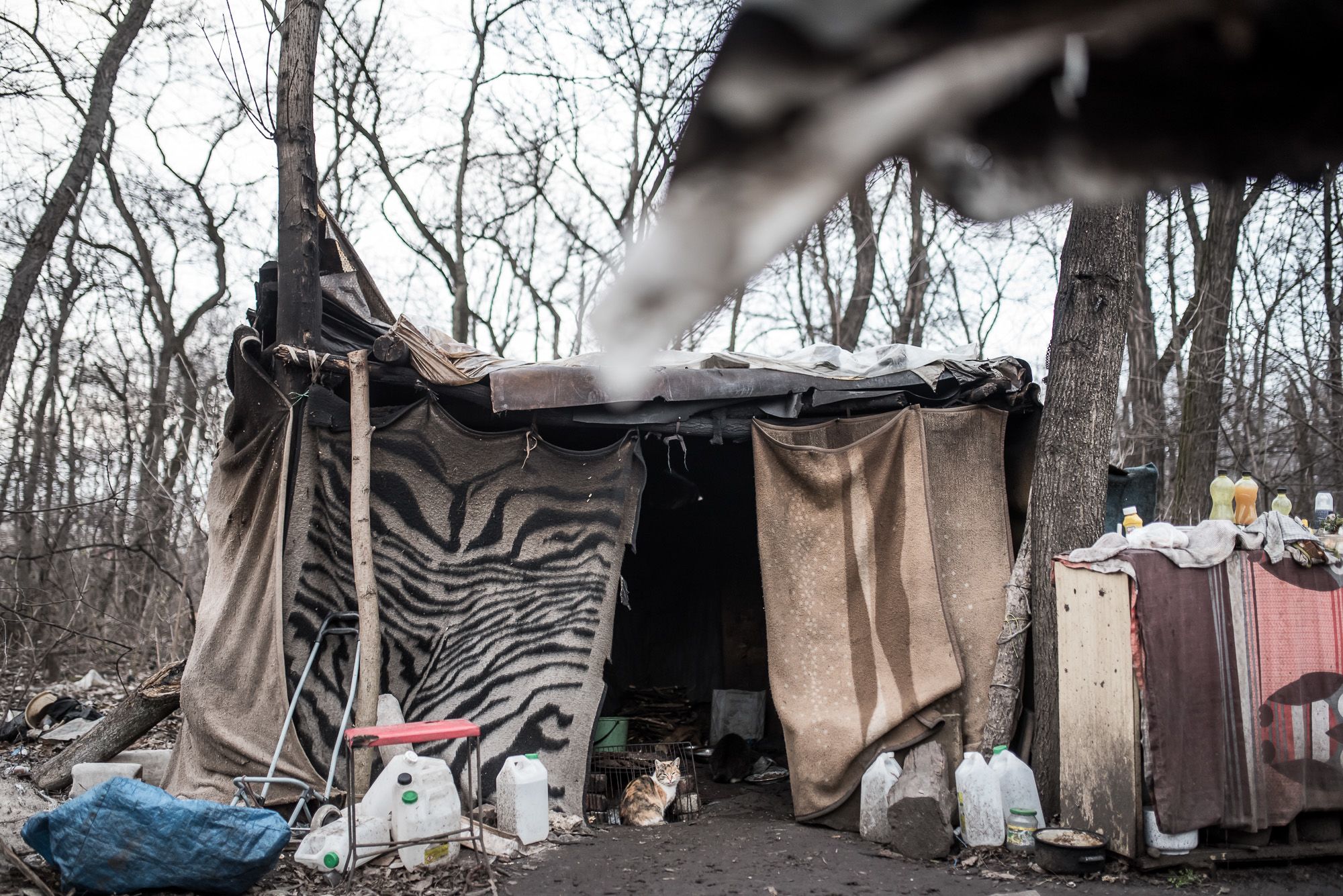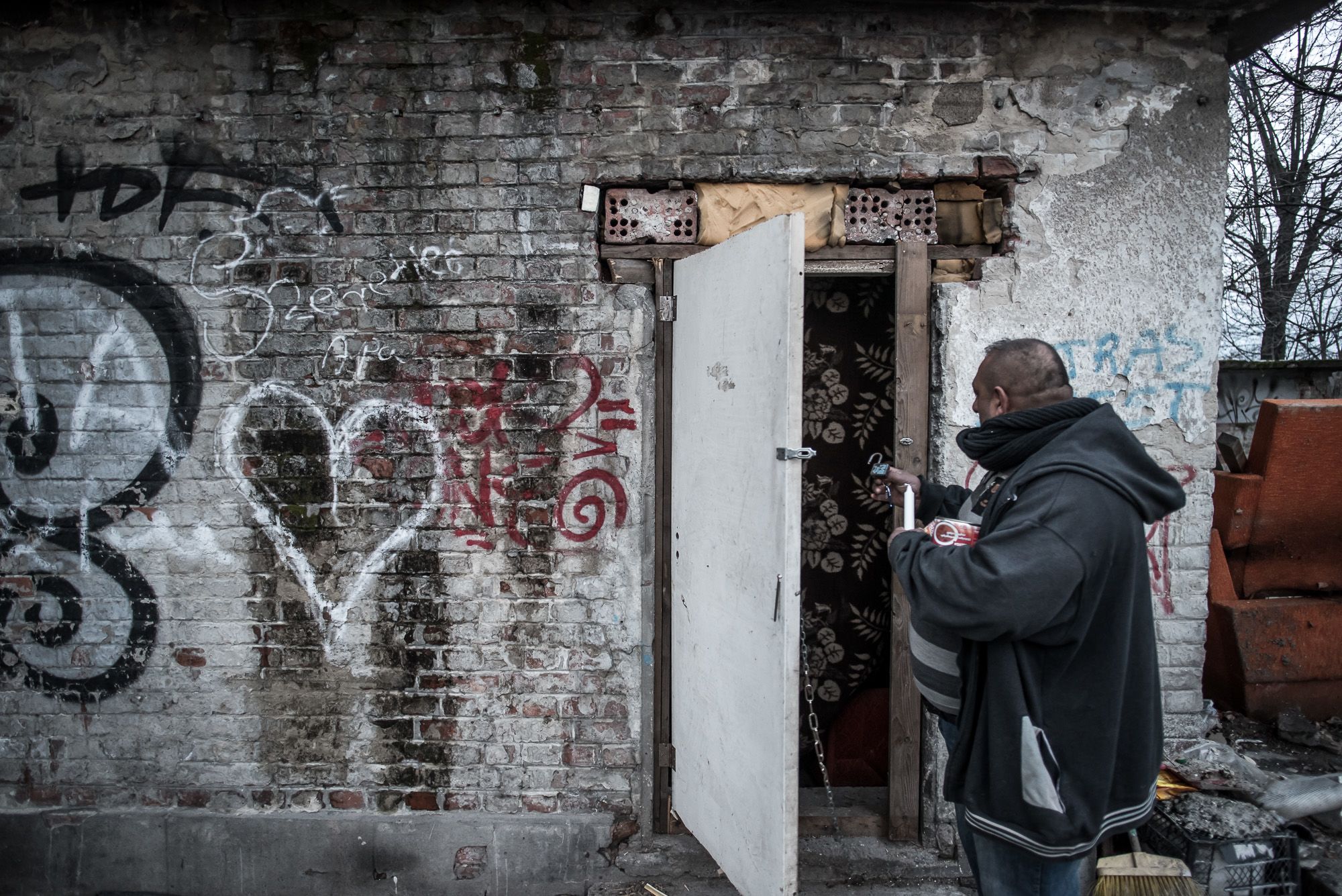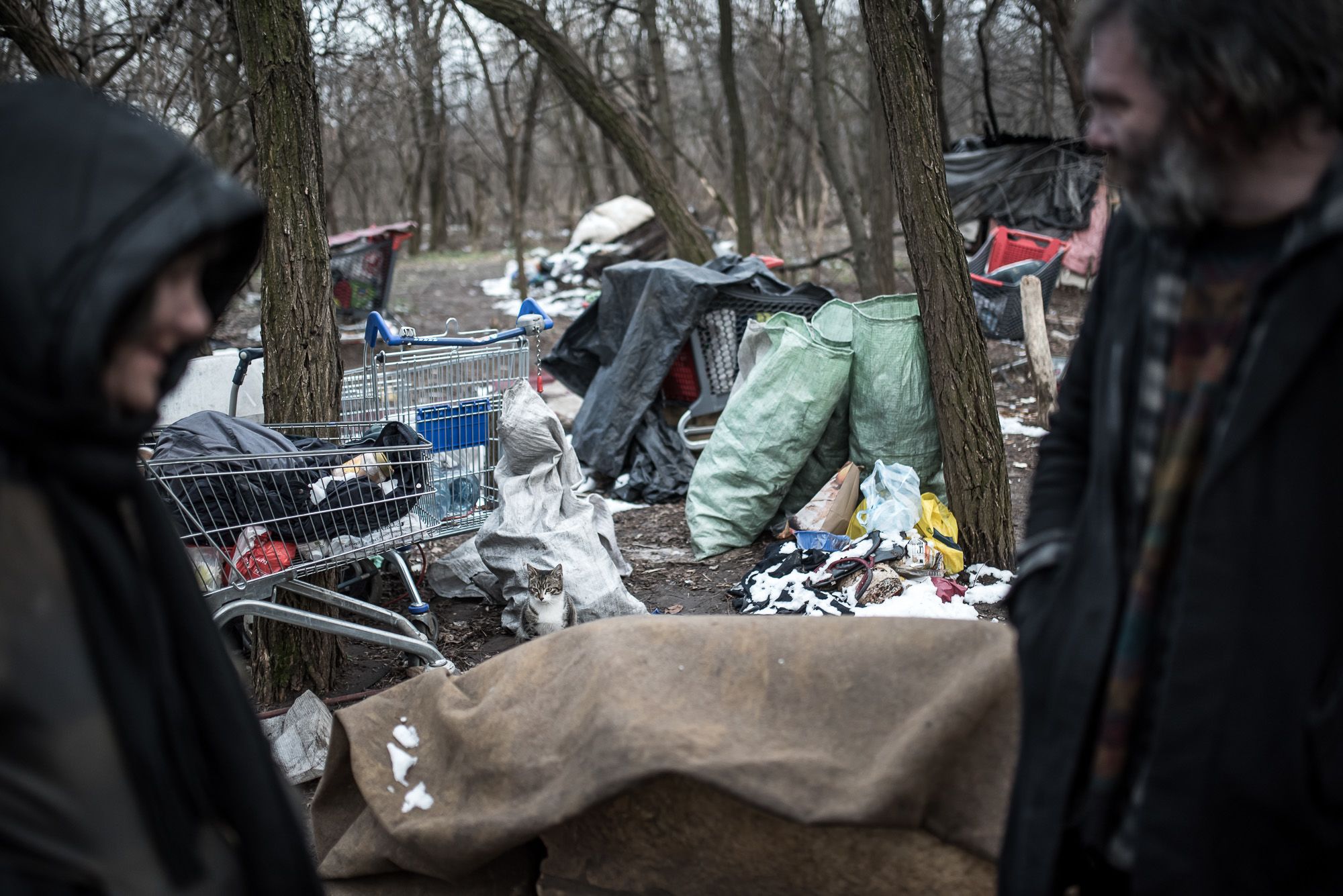 Nagyjából száz ügyfele van a kőbányai irodának, azaz ennyi fedél nélkül élőről tudnak, aki szívesen látja őket. Egész más velük utazni, mintha hívatlanul állítanék be és tolnám az arcukba a fényképező lencséjét: pusztán az, hogy a Vöröskereszt mutat be, megteremti a bizalmat, „persze, fotózz csak”, legyintenek azok, akik egyébként (teljes joggal) a hátuk közepére sem kívánnák a helyzetet. Sőt még kunyhóikat is megmutatják.