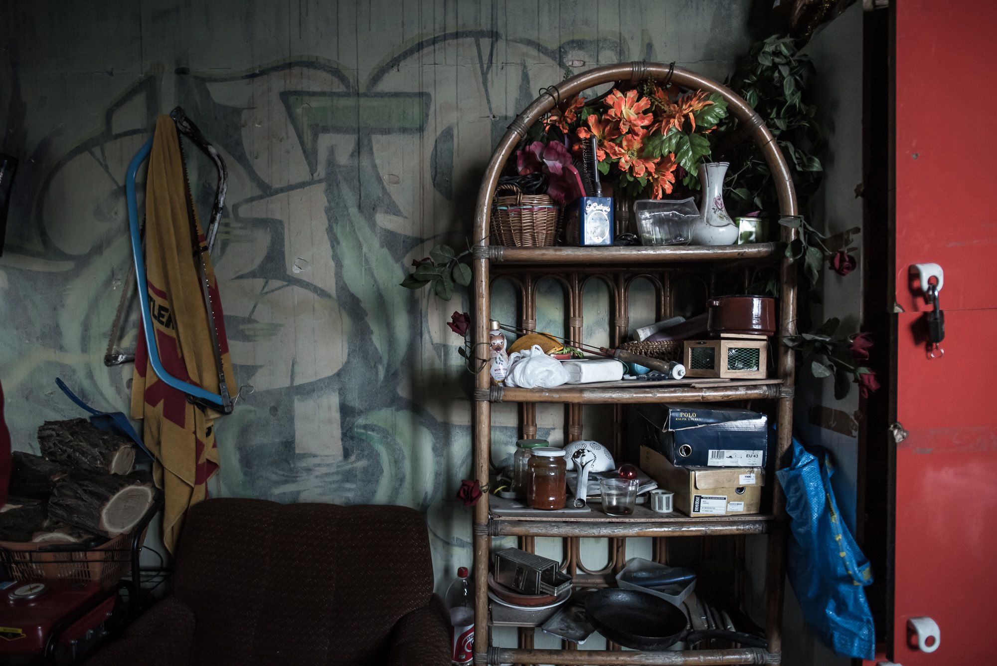 Van egy másfél éves gyerekük is, persze otthonban, „kivennénk, jó helye lenne itt, de ez hivatalosan nem is lakás, úgyhogy nem adják”. A lakás – mert amúgy az! – kuckós, meleg, jó illatú, a benti huszonöt fokban ülve könnyű elfelejteni, hogy a kőbányai Terebesi erdő szélén meredező elhagyatott kamionmosóban vagyunk.