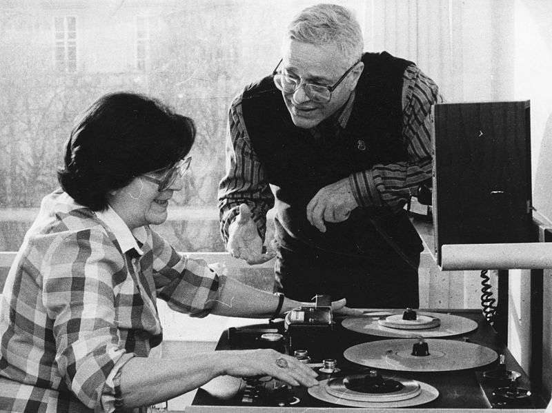 Kovalik Márta és Hegyi Imre a stúdióban, a Magyar Rádió Pollack Mihály téri épületében 1980-ban – fotó: Fortepan/Wikipedia