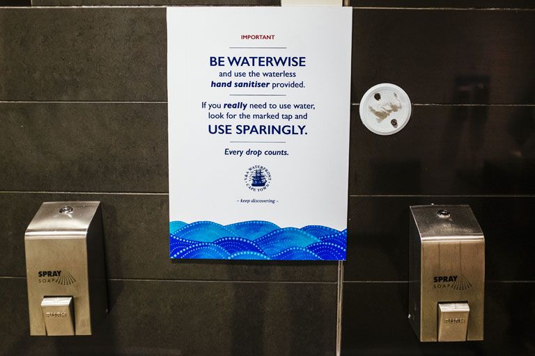 A nyilvános mosdókban már ilyen táblákon szólítják fel az embereket a vízzel való spórolásra (Fotó: Getty Images)