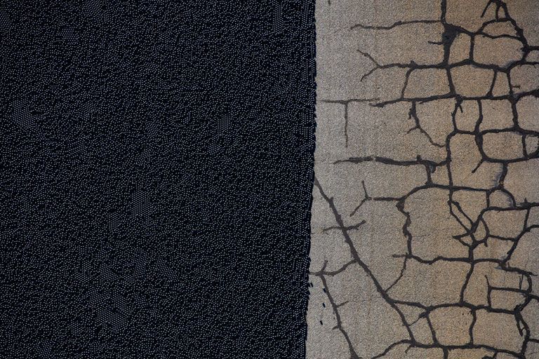 A fekete golyók teljesen befedik az Ivanhoe vízgyűjtő felszínét, így csökkentve a párolgást (Fotó: Getty Images)