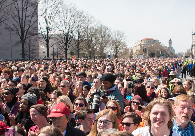 Az amerikai gimnazisták azonban ügyes cselhez folyamodtak: mivel az Egyesült Államokban szomorúan gyakori tömegmészárlásokat követően a fegyverpártiak általában azzal érvelnek, hogy „nem most van itt az ideje annak, hogy a fegyverek szabályozásáról beszéljünk”, a Stoneman Douglas diákjai elébe mentek ennek, és a mészárlástól időben távolabb eső március 24-ét jelölték meg mint a fegyverkontroll melletti demonstráció napját. A March For Our Lives megmozdulások az egész országban százezreket vittek az utcára, a legnagyobb tömeg természetesen a fővárosban, Washington D.C.-ben volt, ahol a CBS hírcsatorna adatai szerint csúcsidőben mintegy 202 ezer ember demonstrált, de az összes résztvevő számát 800 ezer környékére becsülik a szakértők. Az USA más nagyvárosaiban is hatalmas tömegek vonultak az utcákon.
