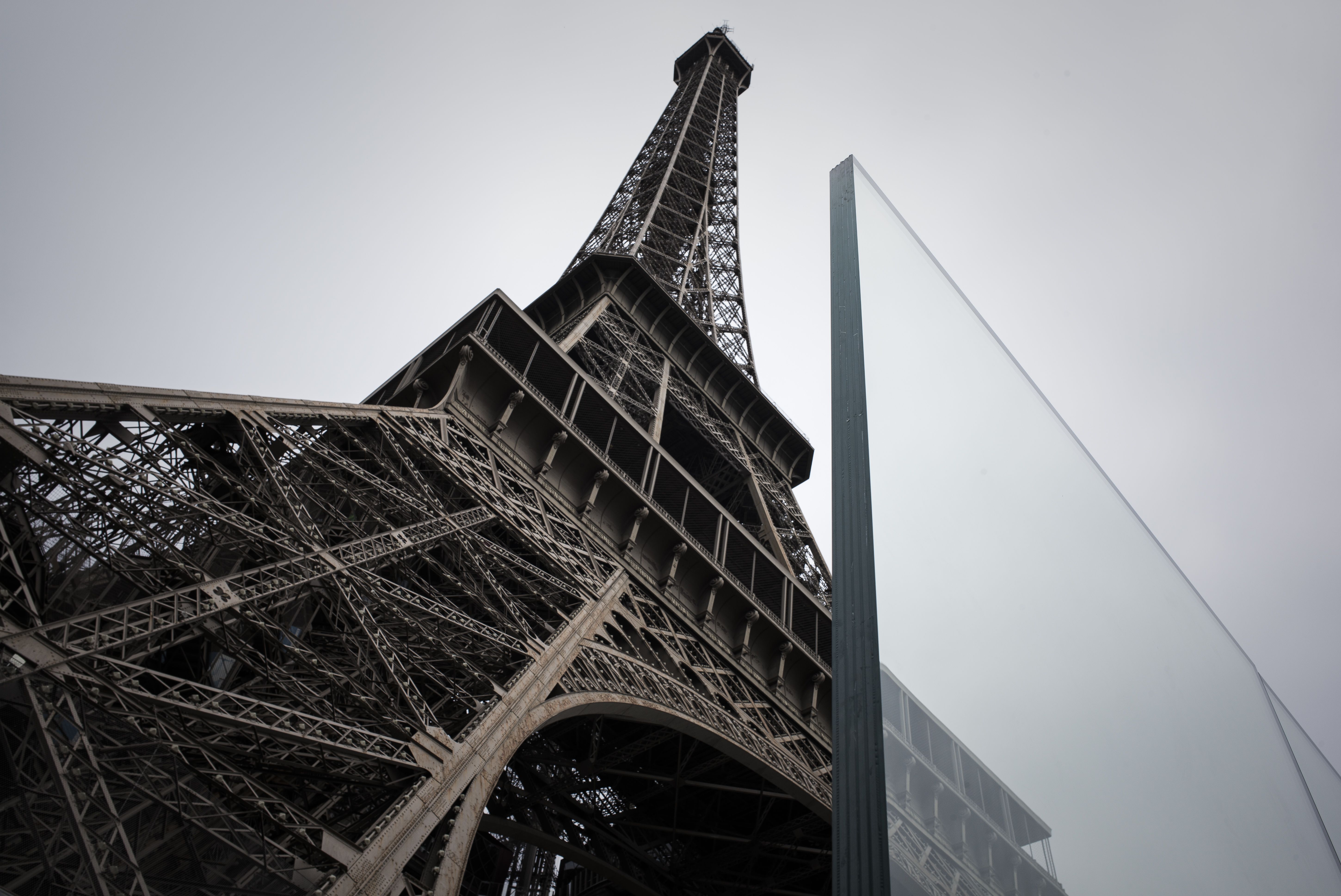 A biztonsági üvegfal 6,5 centiméter vastag, 3 méter magas, 1,5 tonnás paneljei a Mars-mező és a Szajna felől védelmezik az épületet, így a Mars-mezőn lévő turisták szabadon rálátnak a toronyra és a mögötte elterülő városrészre. A másik két, hosszanti oldalon 3,24 méter magas esztétikus fémkerítést emelnek, amelynek mintázata illeszkedik a torony formájához. A város ütközőbakokat is felállított az esetleges autós támadások ellen.
