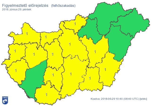 Sajnos a jelek szerint ma sem ússzuk meg kiadós esőzések nélkül. Az Országos Meteorológiai Szolgálat péntekre 14 megyére adott ki elsőfokú riasztást felhőszakadás miatt. Jelenleg Pest, Baranya, Bács-Kiskun, Békés, Csongrád, Fejér, Győr-Moson-Sopron, Komárom-Esztergom, Nógrád, Jász-Nagykun-Szolnok, Tolna, Vas, Veszprém és Zala megyére érvényes a figyelmeztetés.