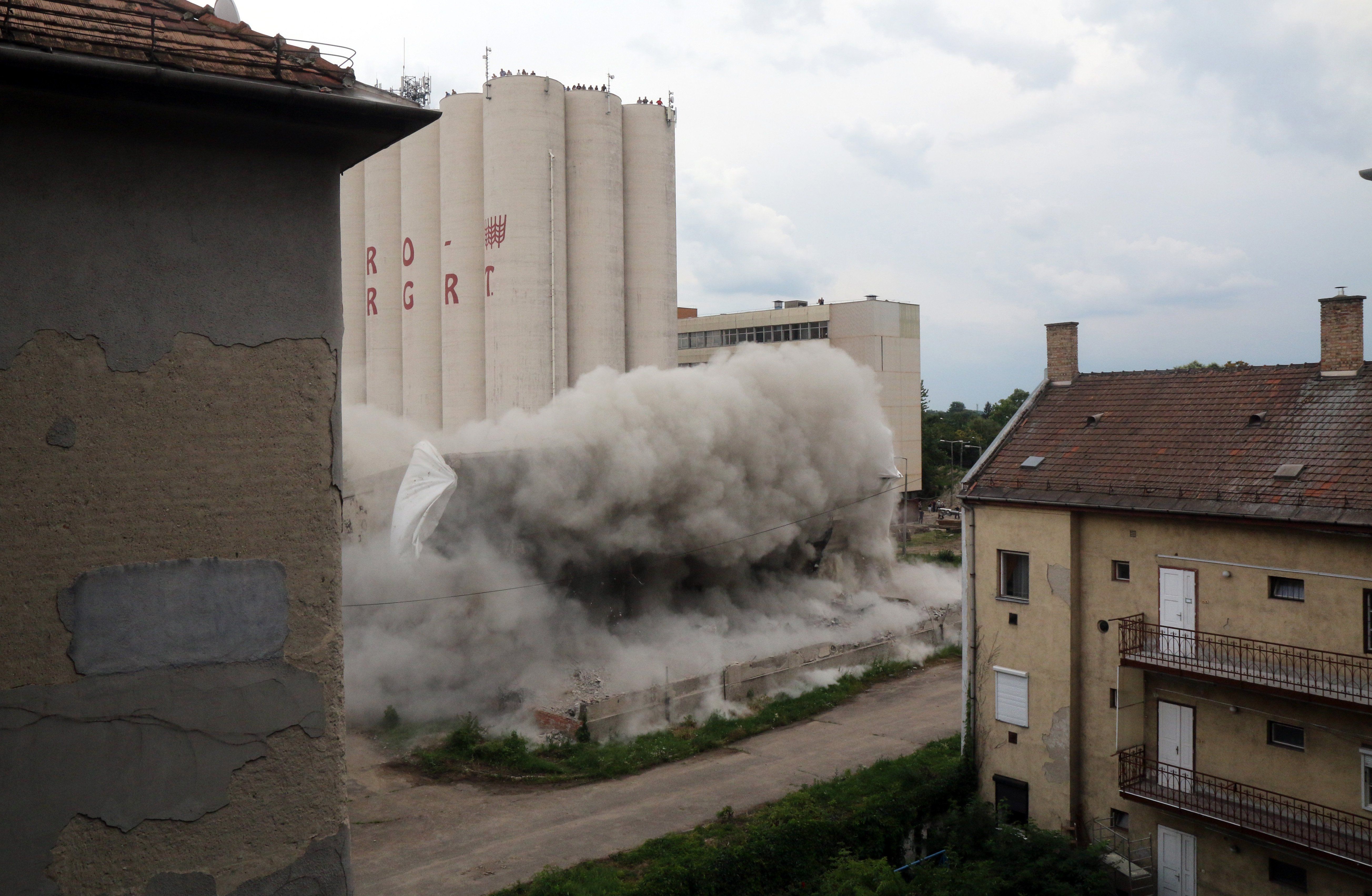 Szerdán felrobbantották az egykori István malmot Miskolcon. Az évtizedek óta használaton kívüli üzem épülete a robbantást követően az oldalára dőlt.